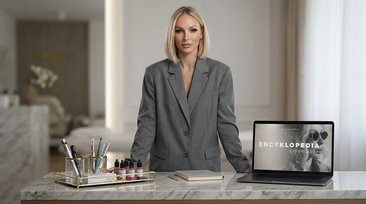 Mapa brwi – geometria, która usprawni Twoją pracę. Uczysz się proporcji twarzy (trzy piętra), triady brwi (front, apex, tail), linii AB / TOP / TAIL, grubości, kierunku wzrostu włosa i ograniczeń anatomicznych. Pokazuję projektowanie brwi dla twarzy wąskiej, szerokiej, dojrzałej i z opadającą powieką.